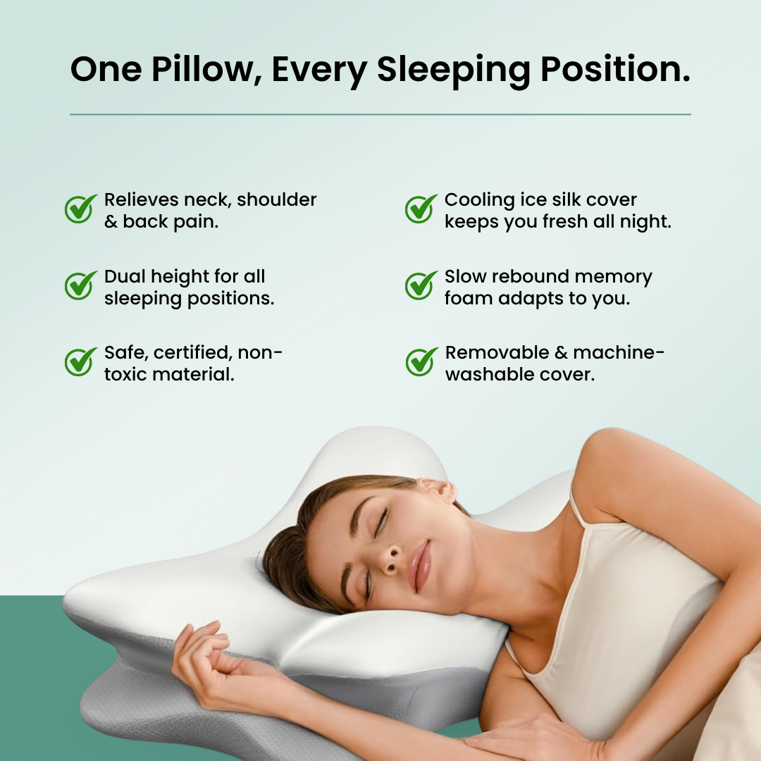 As a sleep and posture specialist, I recommend this pillow for anyone waking up with neck or shoulder pain. Its ergonomic design keeps your spine aligned while you sleep — reducing pressure, relaxing muscles, and improving sleep quality night after night.